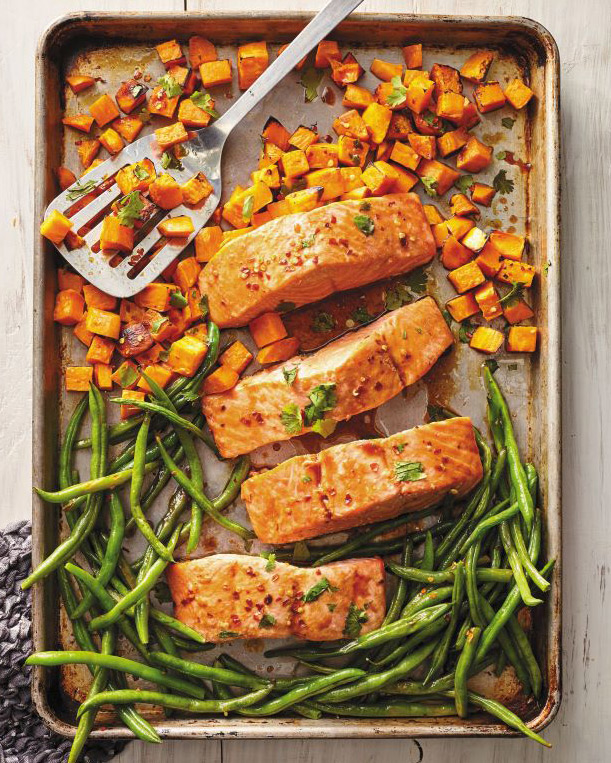 Sheet Pan Honey-Soy Salmon With Sweet Potatoes and Green Beans