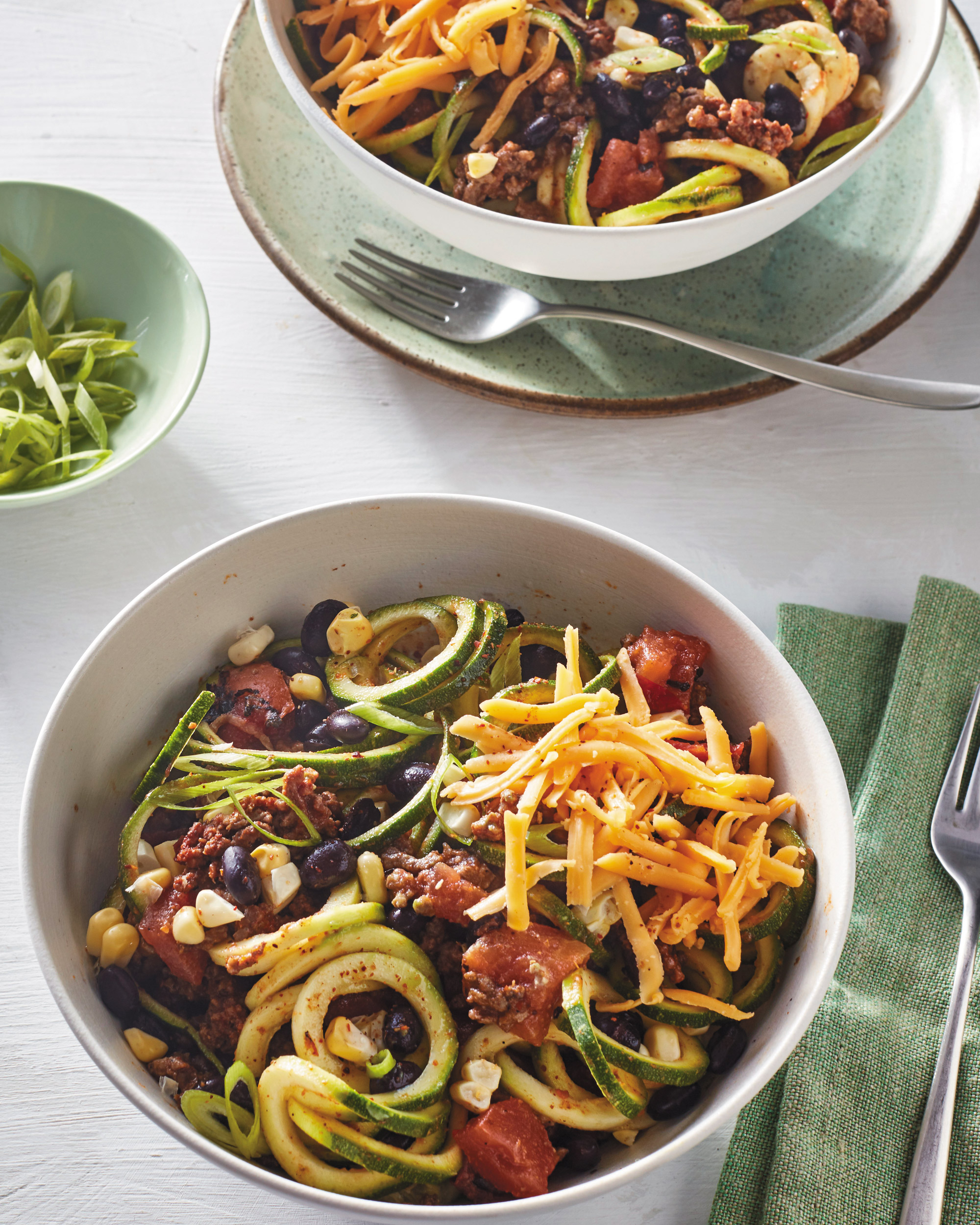 Add zucchini spirals, cover, reduce heat to medium-low, and cook until the zucchini is just tender, about 3 minutes.