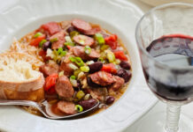 1 pound smoked sausage, sliced into ½-inch pieces (Leslie likes Conecuh)1 medium onion, chopped1 green pepper, chopped2 cloves...