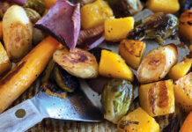 1 butternut squash, peeled and cut into 1-inch cubes1 pound Brussels sprouts, trimmed and cut in half6...
