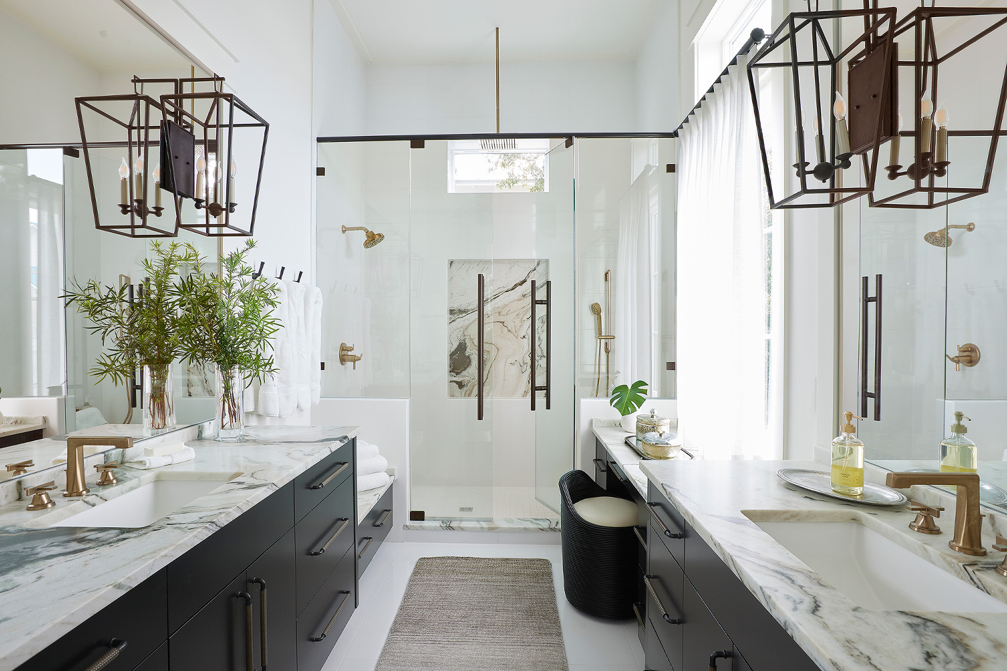 The Result: Lighting should reach out to soften the room. The warmth of gold and the clarity of glass ensure that a high-contrast palette feels sophisticated and airy rather than closed-in.