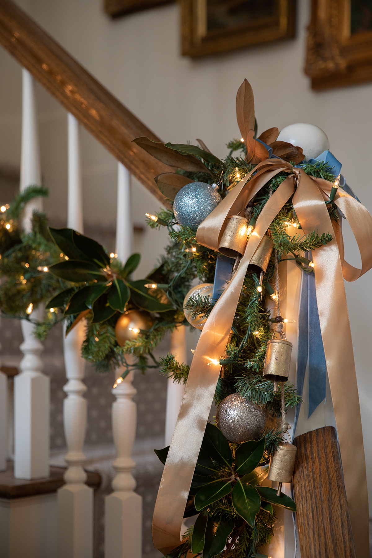 Tori Johnston’s holiday décor has always embraced her home’s palette of soft blues, greens, and golds. But this year, she purchased some red satin ribbon for gift wrapping and decided to mix it in—just to see. Suddenly, she was stepping out of her traditional scheme by adding the classic Christmas standard. “There’s no red in my house, but when I tried it, it looked so good!” she says. “I put it up in the dining room and loved it, so I immediately ordered more.”